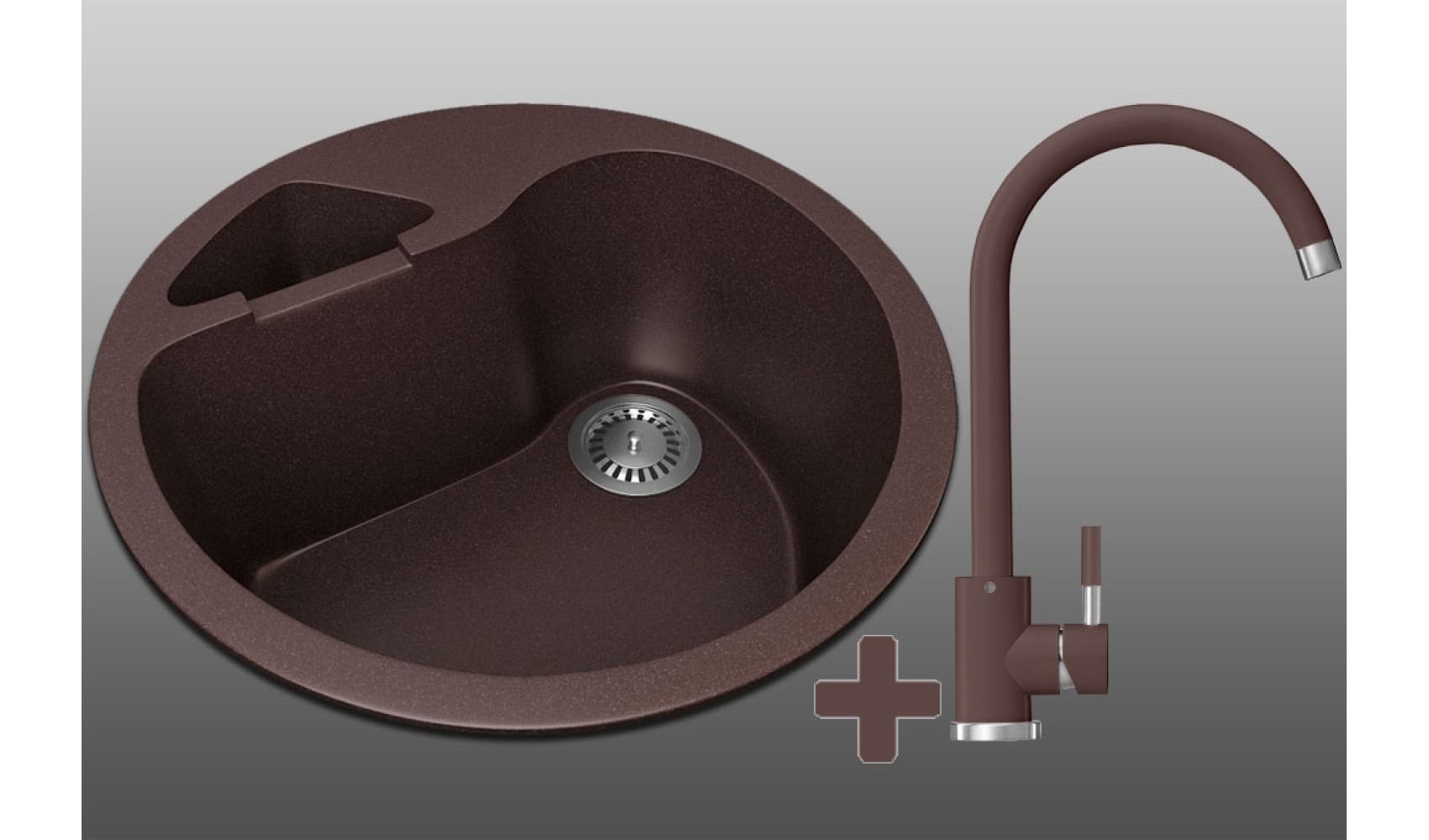 Теги: круглая мойка, коричневая мойка, кухонная мойка с одной чашей, кухонная мойка без крыла, гранитная кухонная мойка, мойка + кран