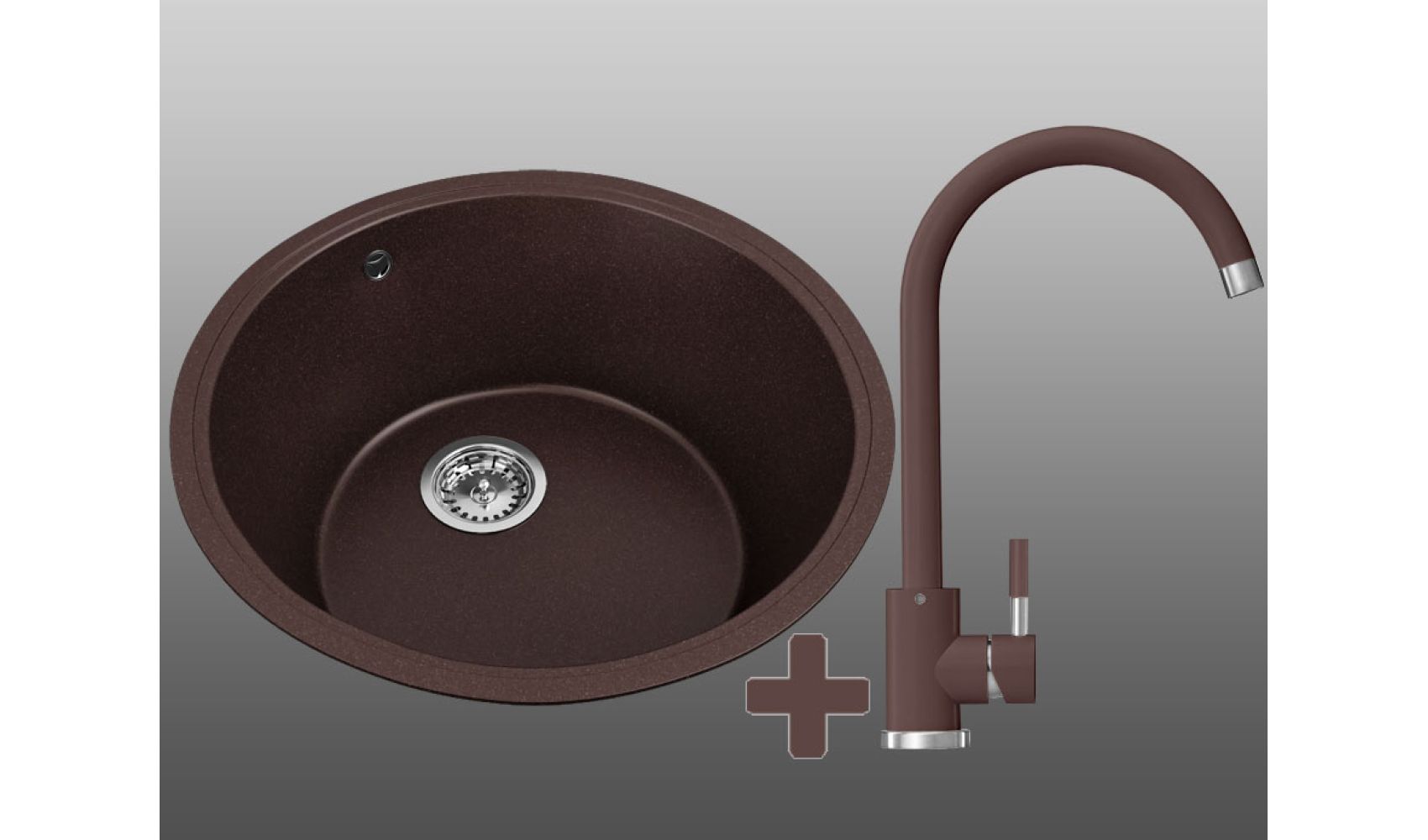 Теги: круглая мойка, коричневая мойка, кухонная мойка с одной чашей, кухонная мойка без крыла, гранитная кухонная мойка, мойка + кран