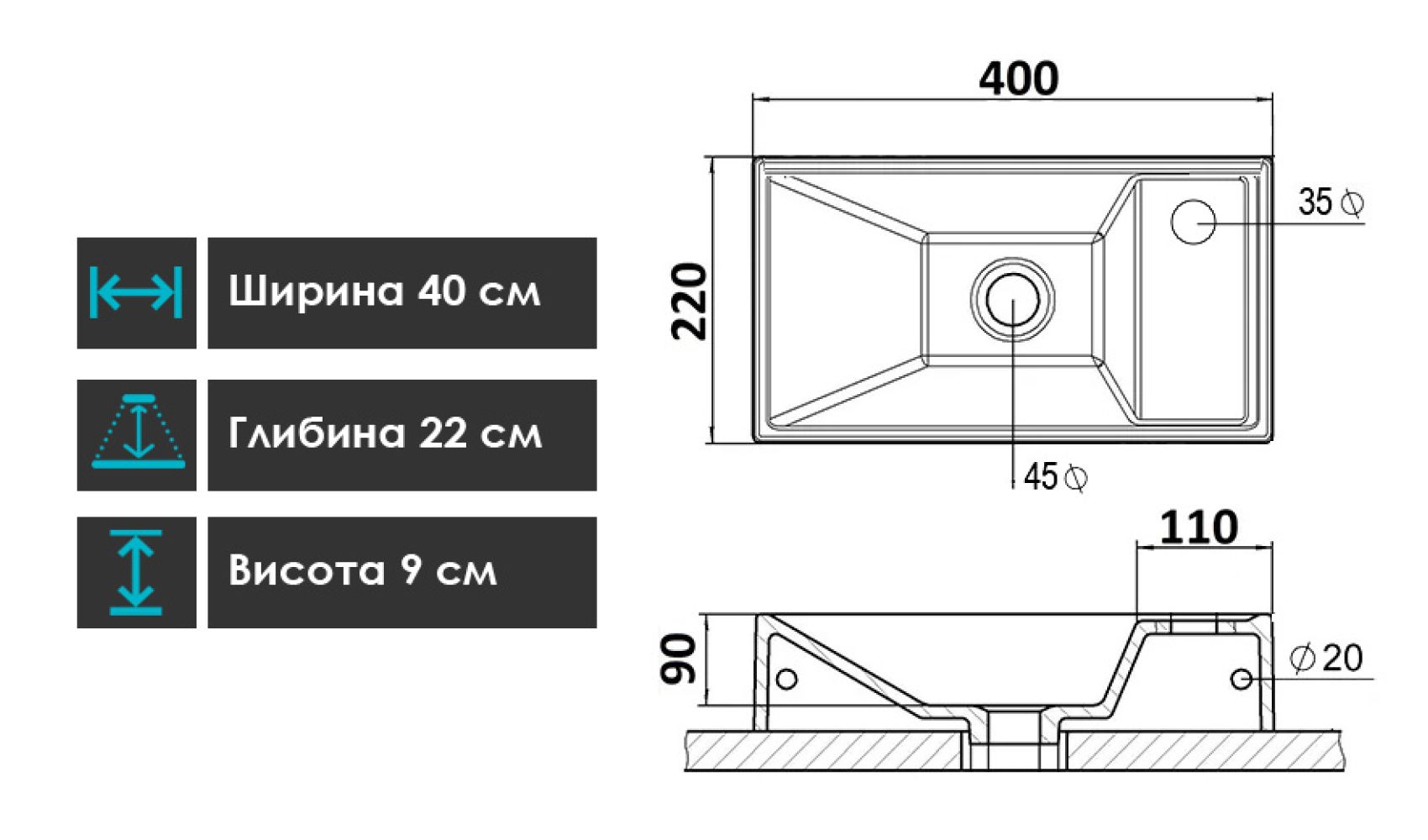 Теги: керамический умывальник, умывальник подвесной, раковина подвесная, прямоугольная раковина, раковина для ванной