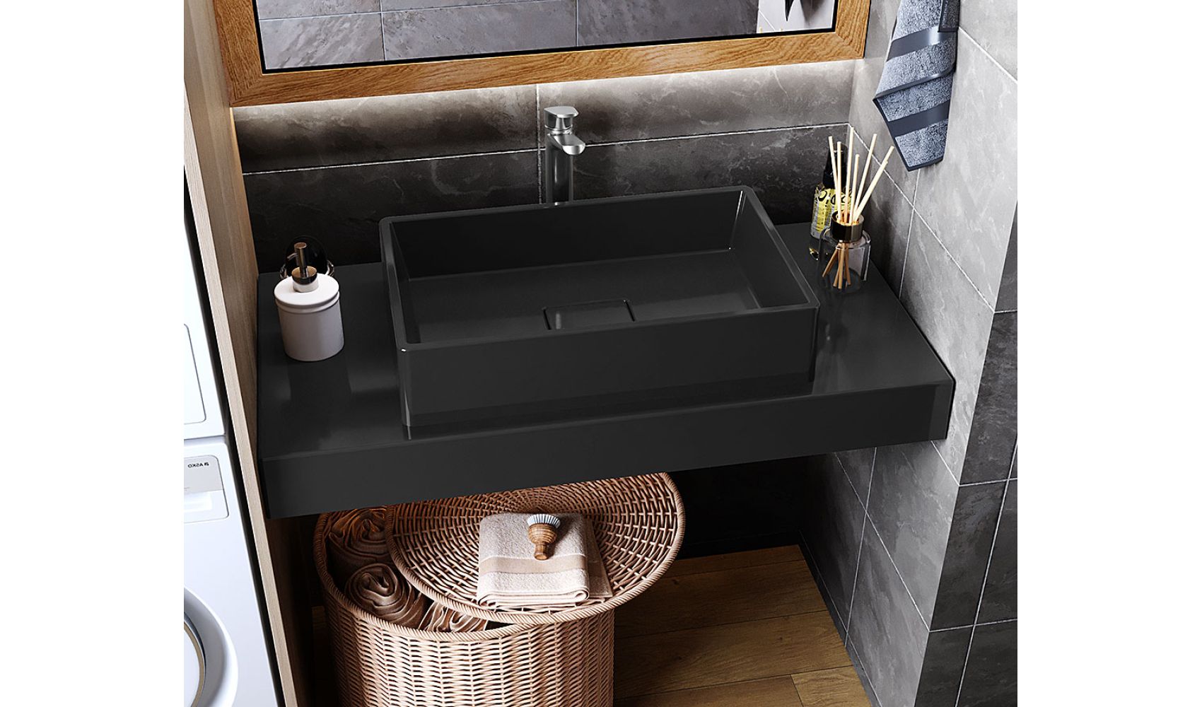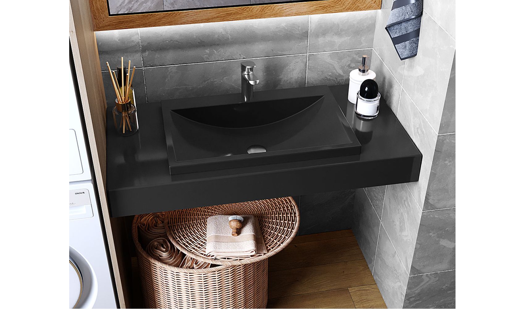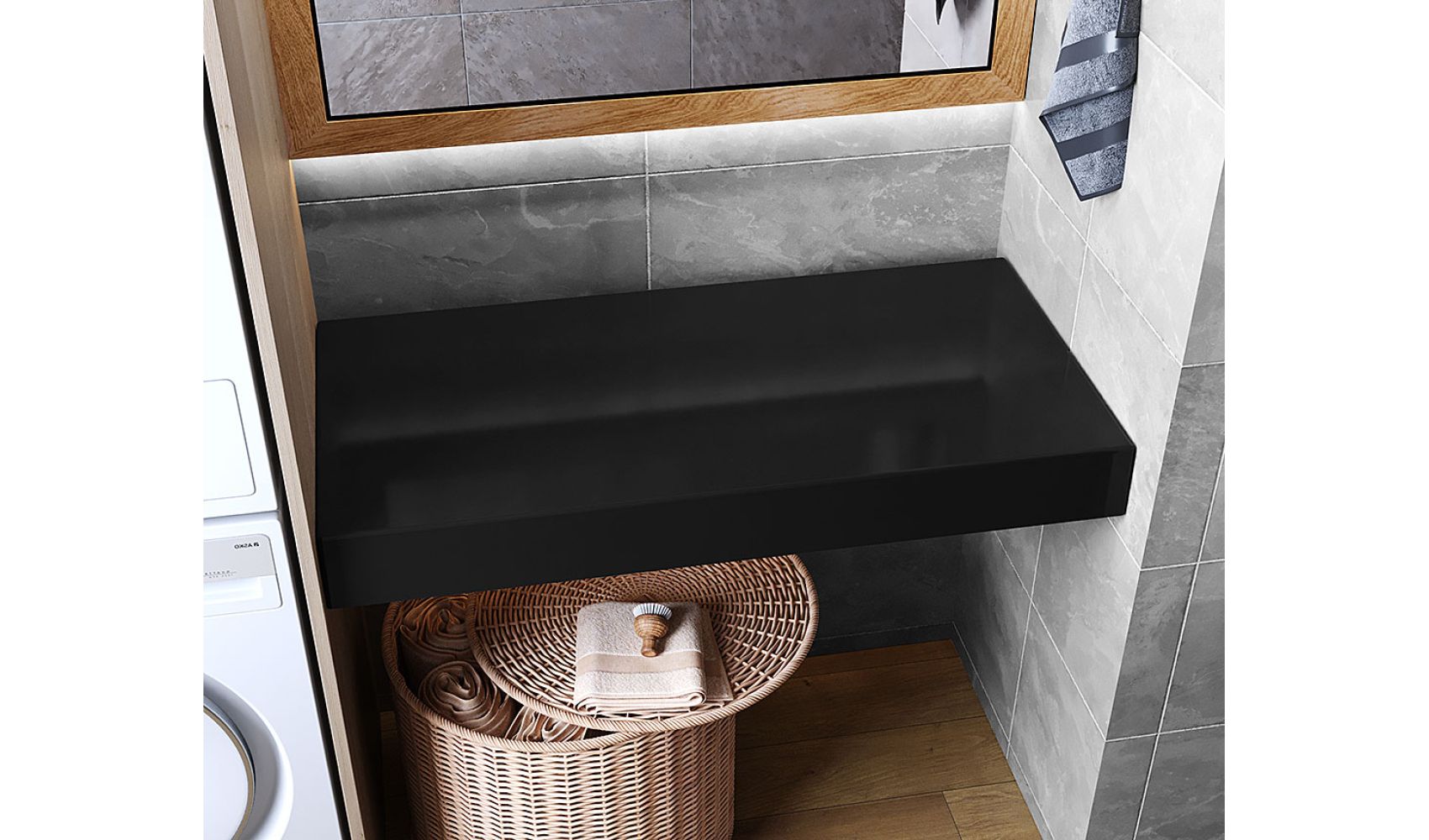 Теги: Столешница под умывальник, в ванную, литой мрамор, 100 см, Status Black