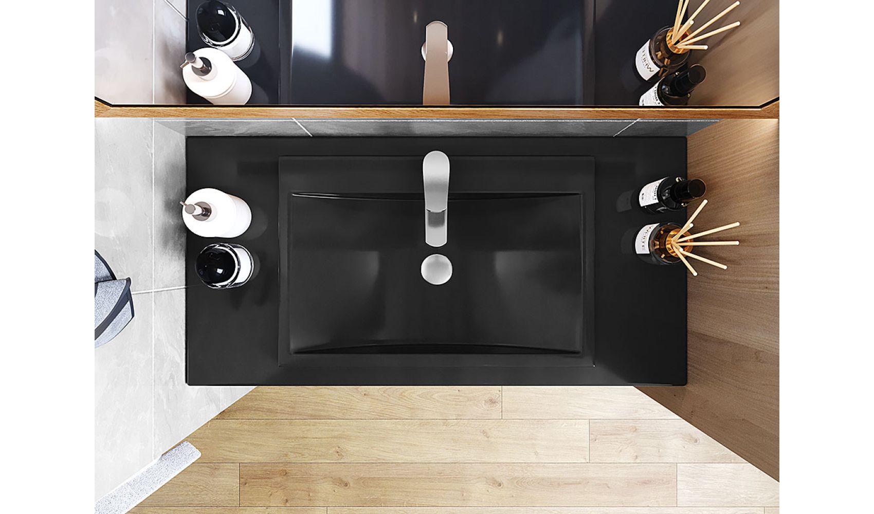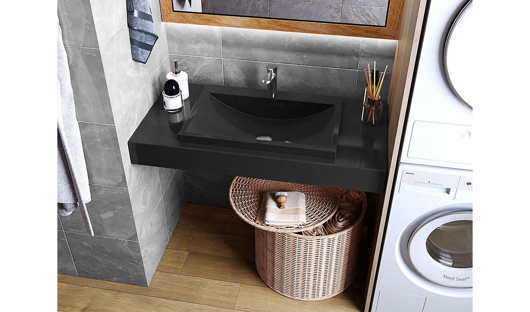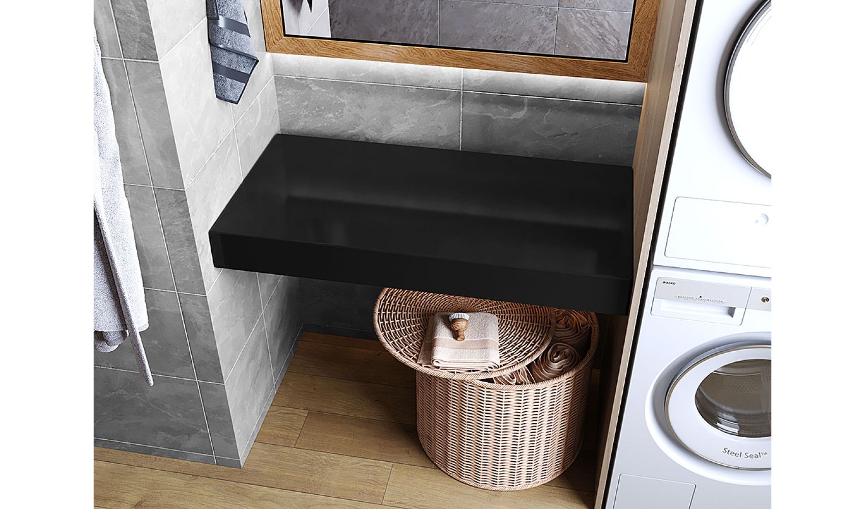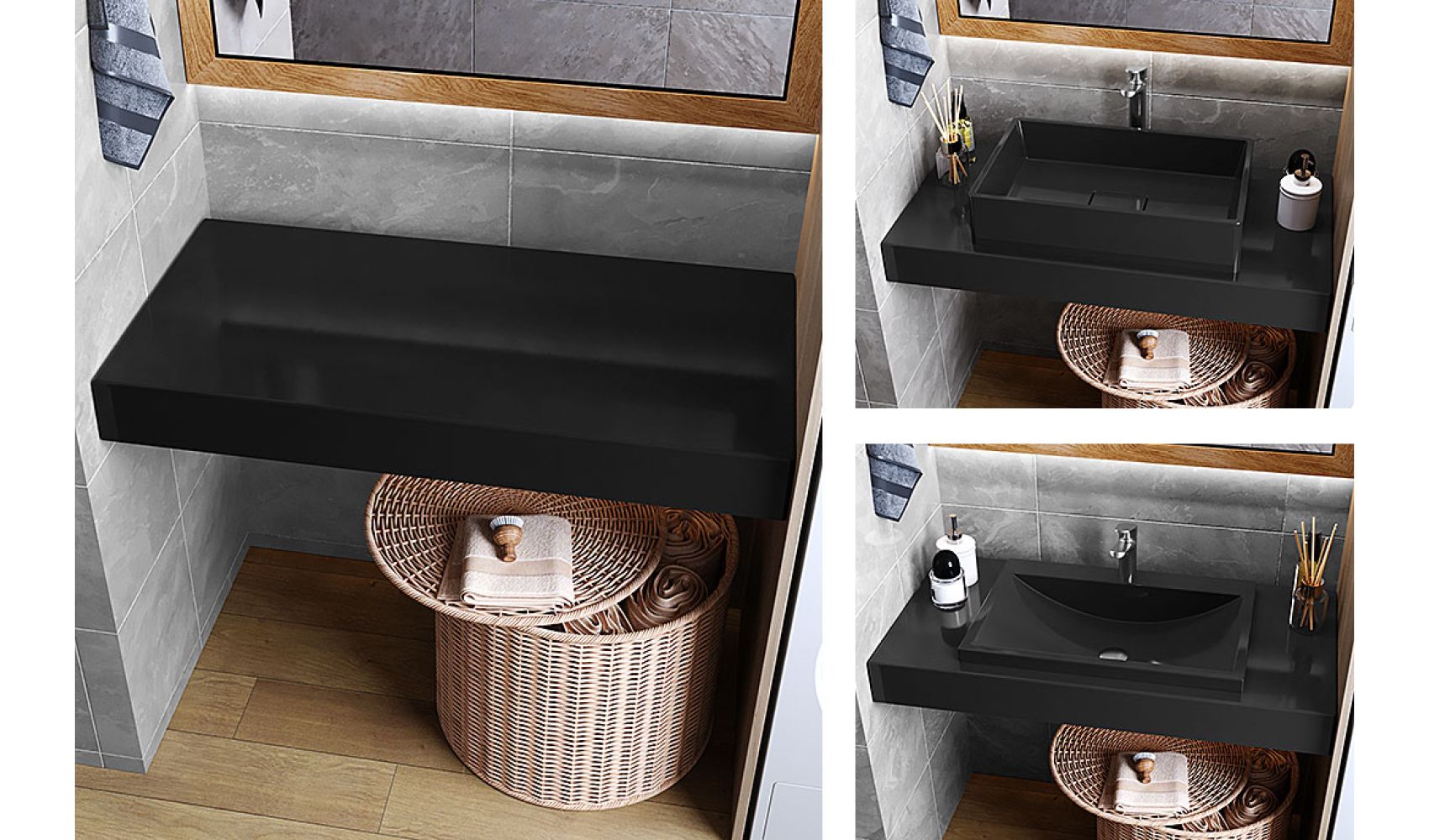 Теги: Столешница под умывальник, в ванную, литой мрамор, 100 см, Status Black