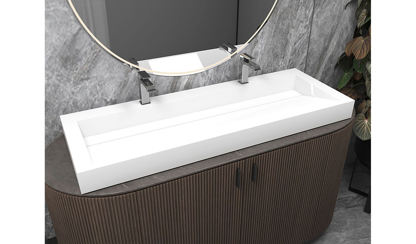 Данная конструкция предусматривает 2 варианта расположения смесителя. Один по центру или два на одинаковом расстоянии в зависимости от пожеланий заказчика. Отличное качество и гладкая поверхность. Официальная гарантия от производителя составляет три года.