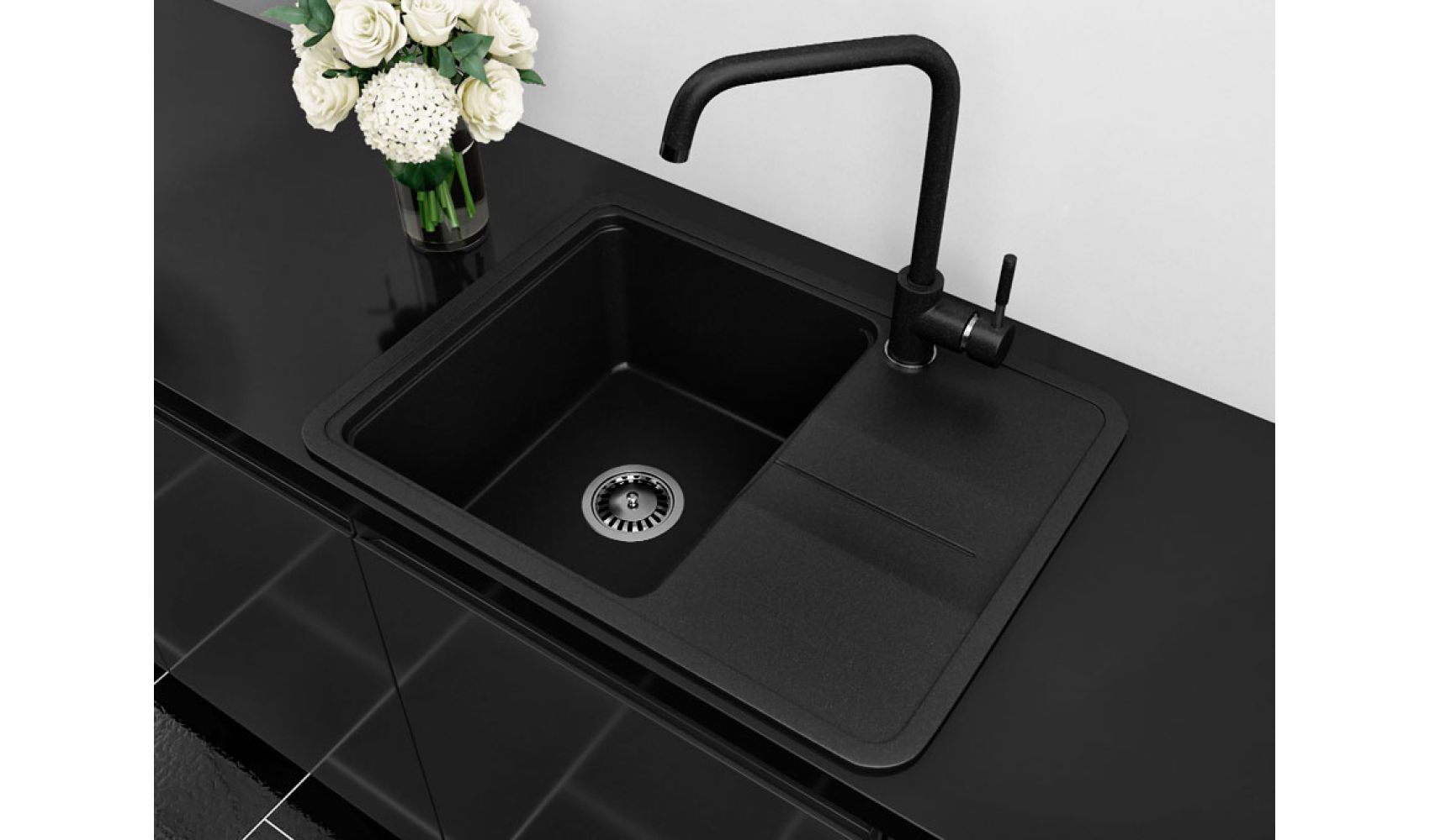 Теги: прямокутна мийка, чорна мийка, кухонна мийка з однією чашею, кухонна мийка з крилом, гранітна кухонна мийка