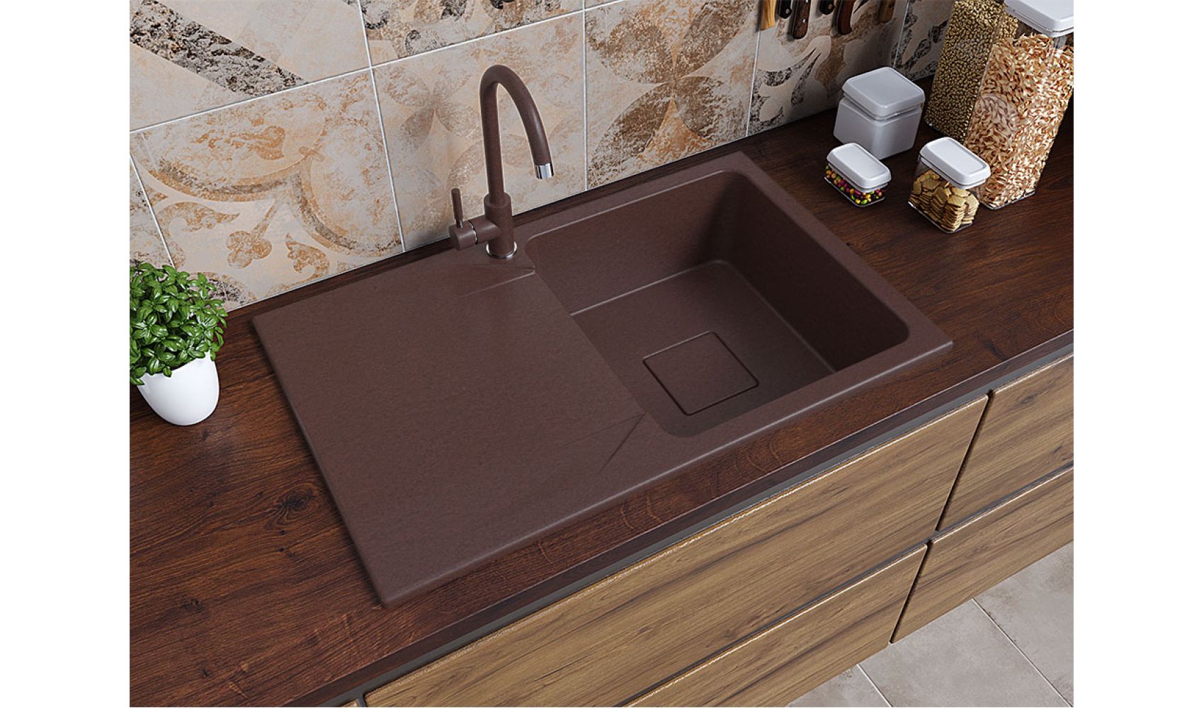 Теги: прямокутна мийка, біла мийка, кухонна мийка з однією чашею, кухонна мийка з крилом, гранітна кухонна мийка