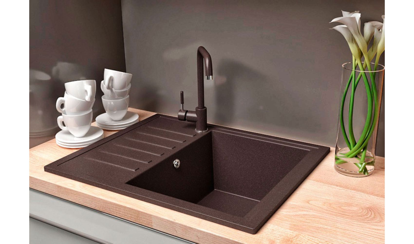 Теги: прямокутна мийка, коричнева мийка, кухонна мийка з однією чашею, кухонна мийка з крилом, гранітна кухонна мийка