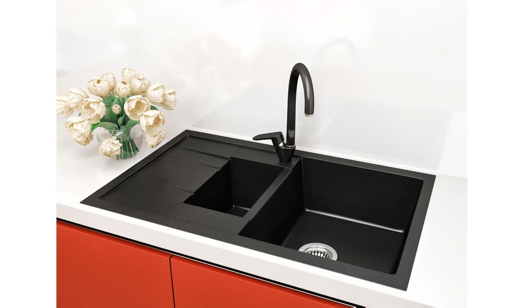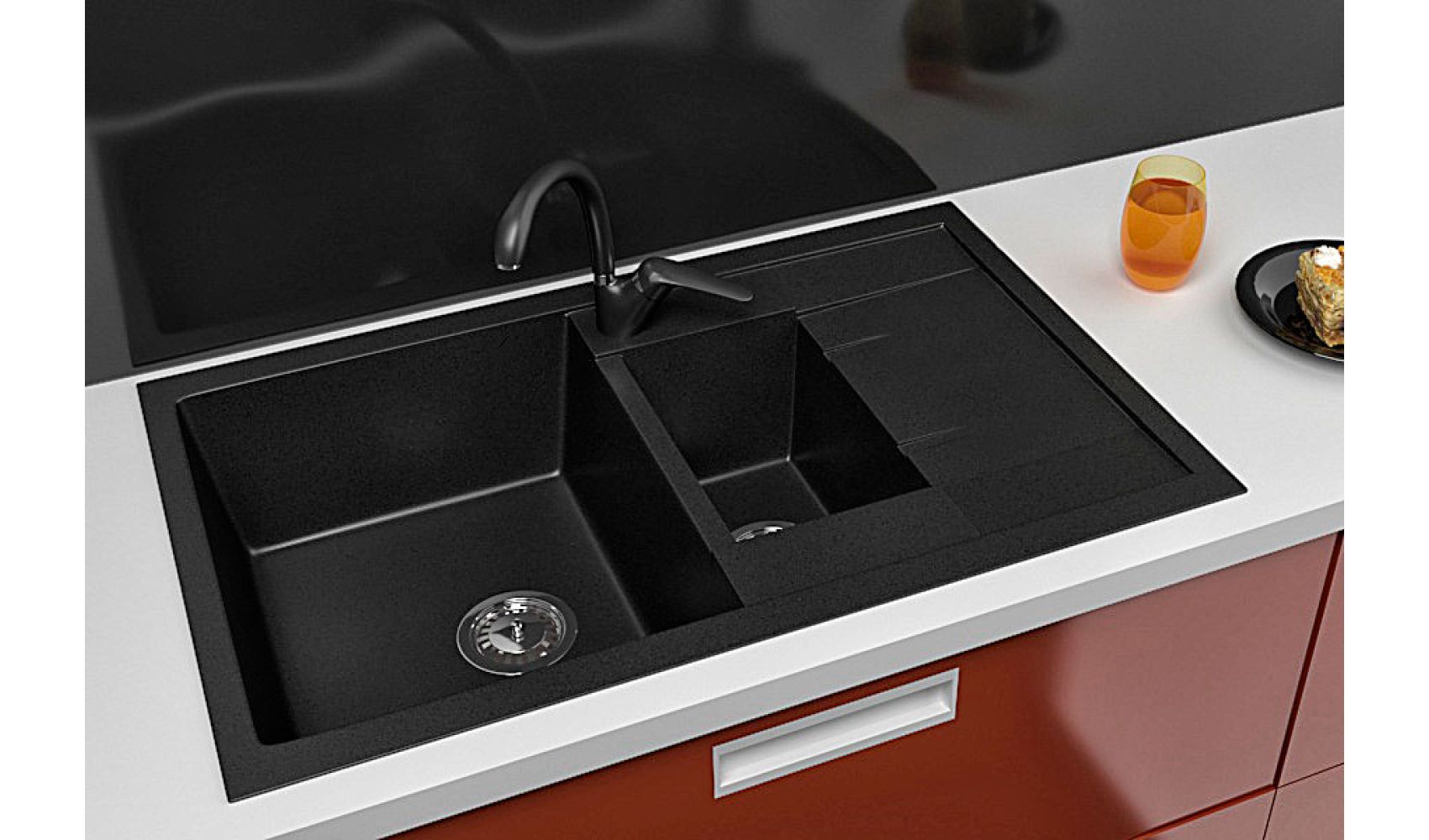 Теги: прямокутна мийка, чорна мийка, кухонна мийка з двома чашами, кухонна мийка з крилом, гранітна кухонна мийка