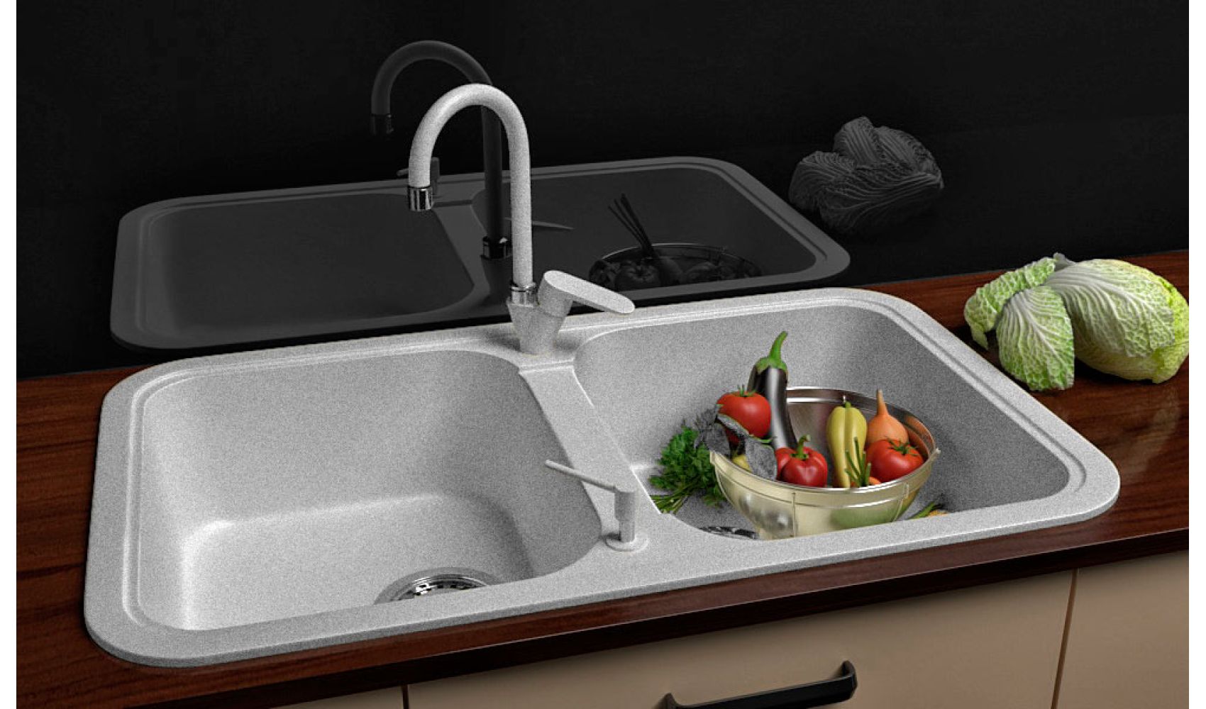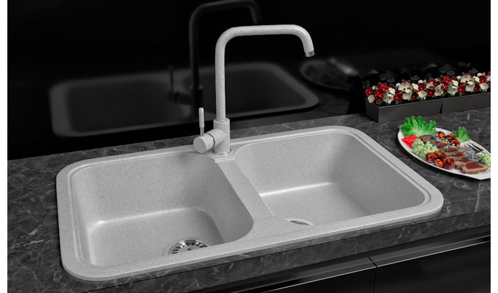 Теги: прямокутна мийка, сіра мийка, кухонна мийка з двома чашами, кухонна мийка з крилом, гранітна кухонна мийка