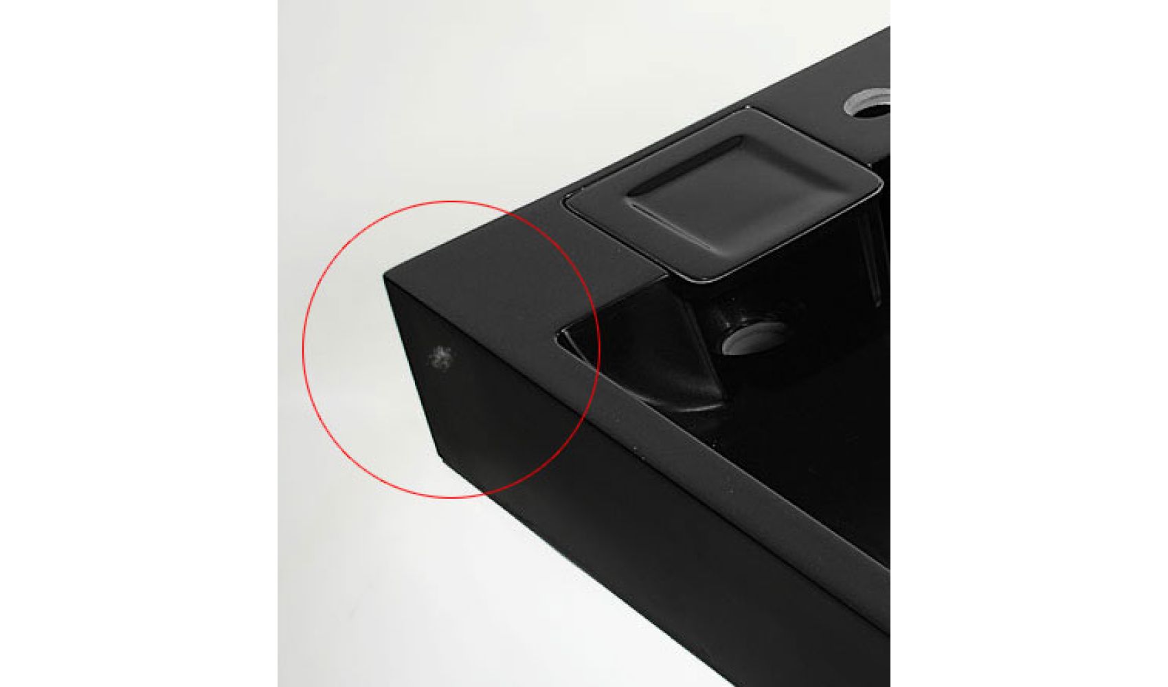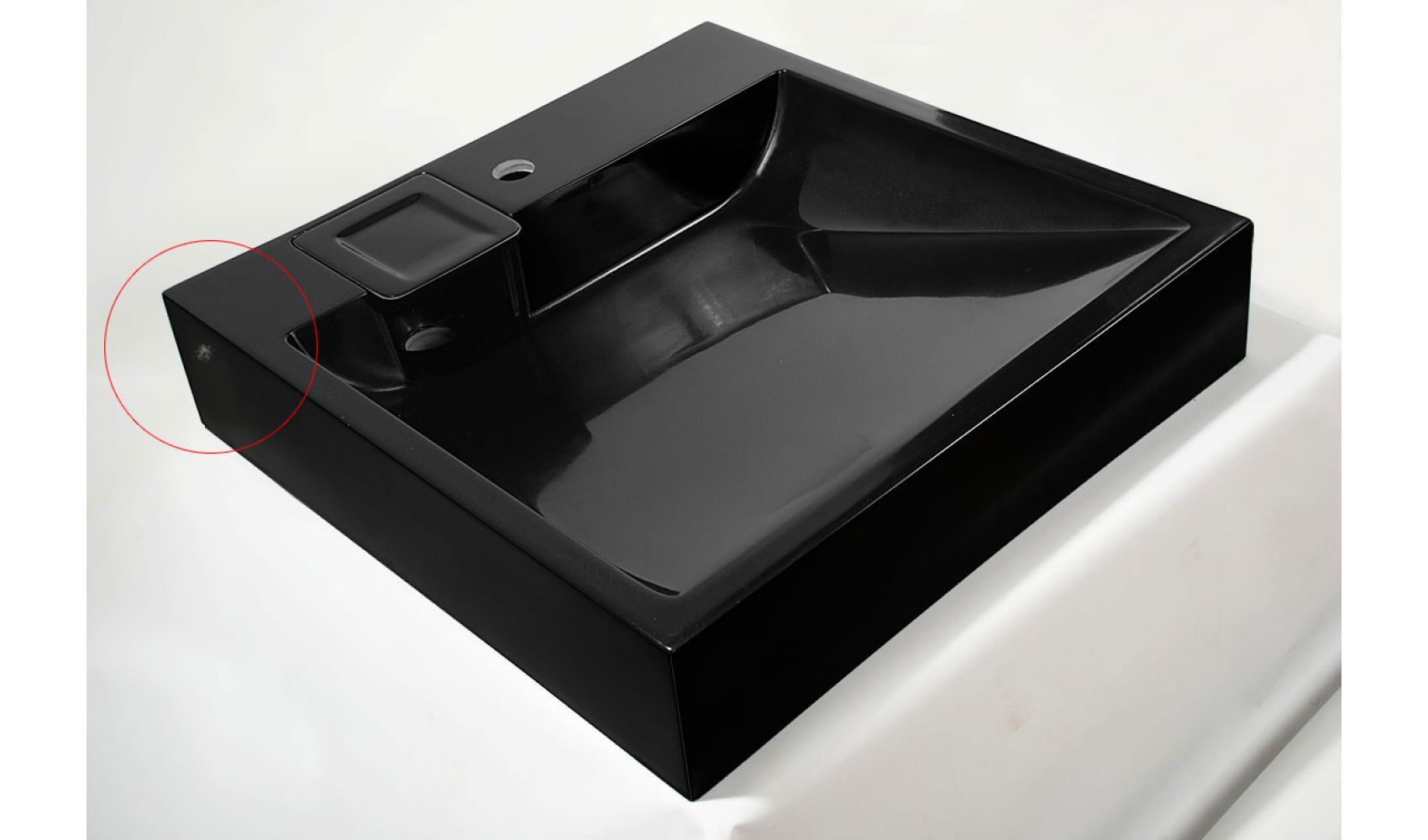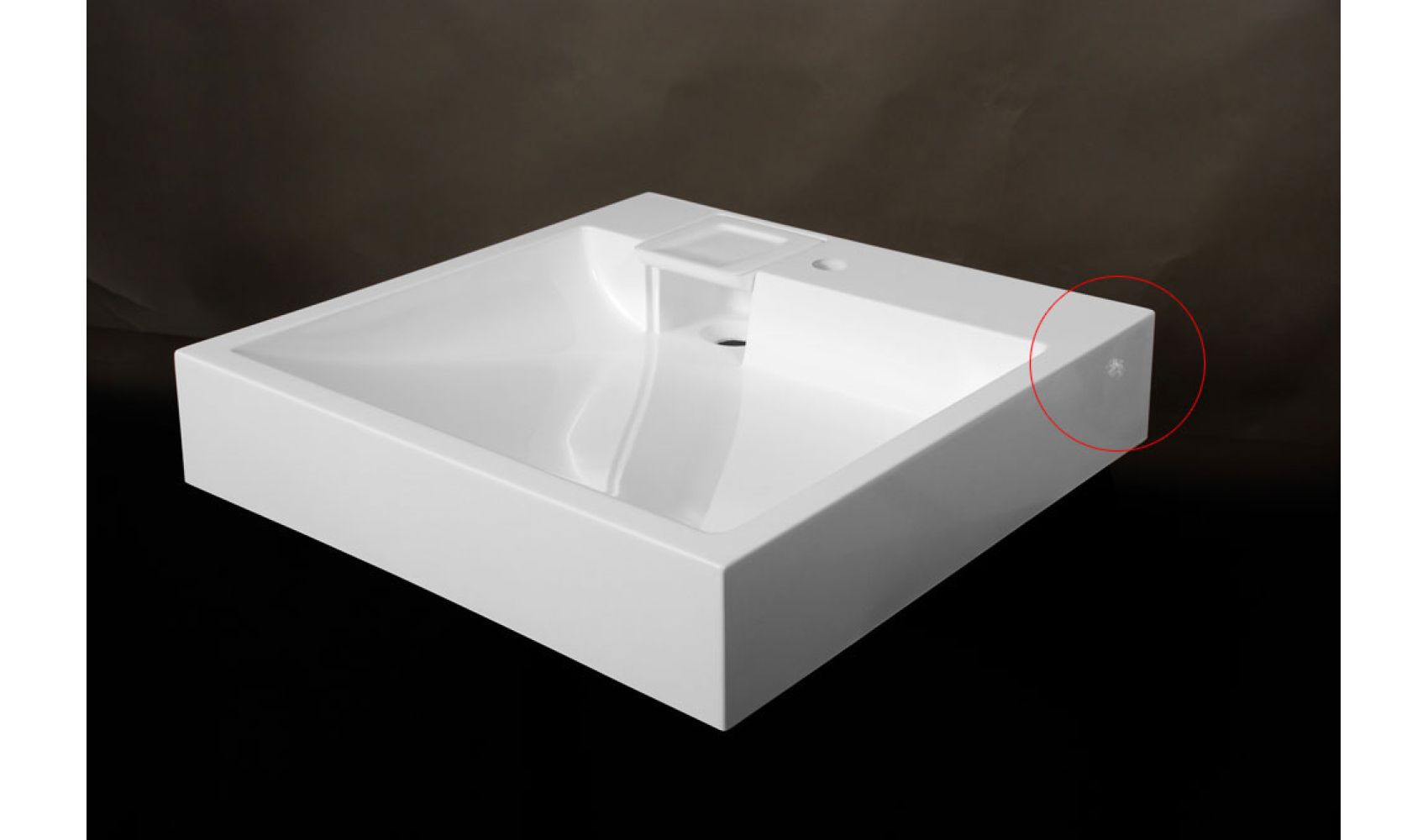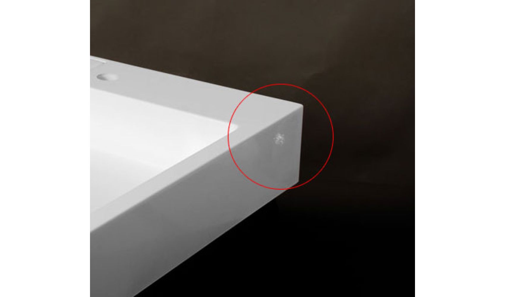 Уцененный товар с косметическим дефектом!!! Мелкая отбраковка по визуальному несоответствию. Дефект N001 - внутри чаши небольшая точка более серого цвета, дефект при шлифовке финишного изделия. На ощупь не чувствуется,только визуально слегка заметен. При производстве раковин и умывальников, есть небольшой процент визуального мелкого брака. Связанного с неравномерностью распределения сантехнического слоя керамики или при финишной полировки изделия. Брак только визуальный - это точка некорректного цвета, или полоска. При этом раковина или умывальник остаётся полностью функциональным, а дефект после установки зачастую даже не заметен. Дефект на первых фото обведен красным. Визуальный дефект на функциональность раковины не имеет влияния.